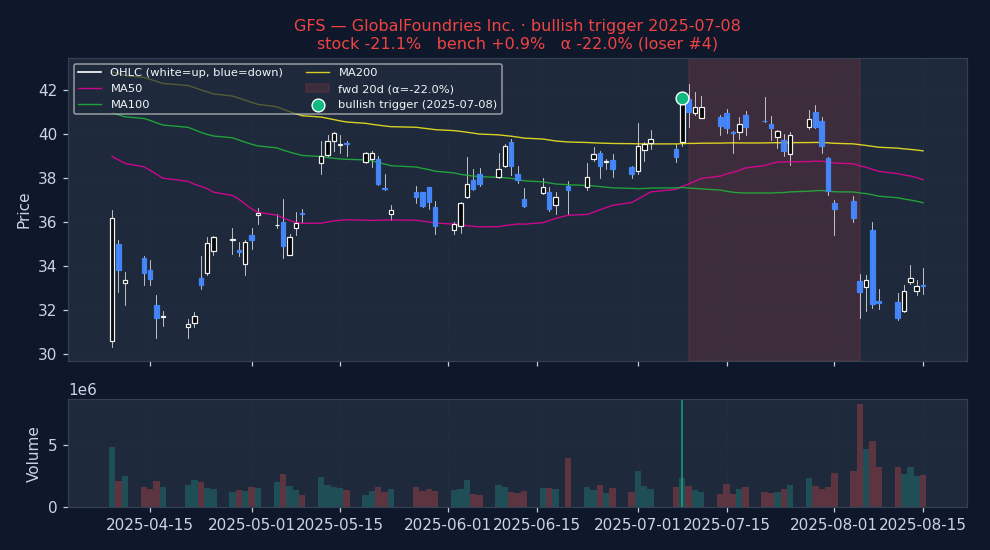 At a glance (20d alpha vs S&P 500 Equal Weight, US-only)