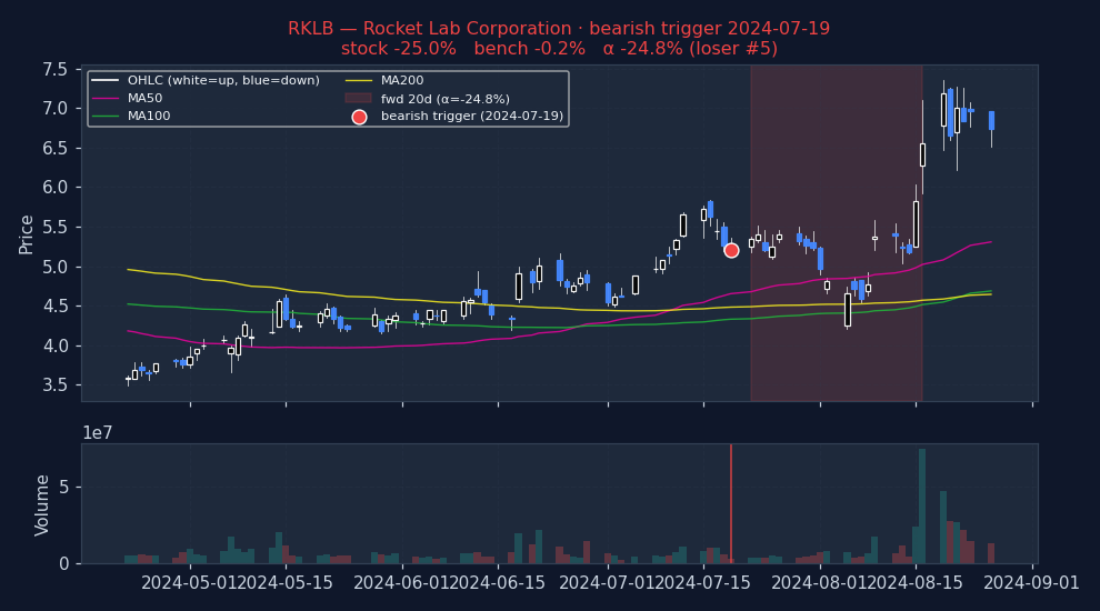 At a glance (20d alpha vs S&P 500 Equal Weight, US-only)